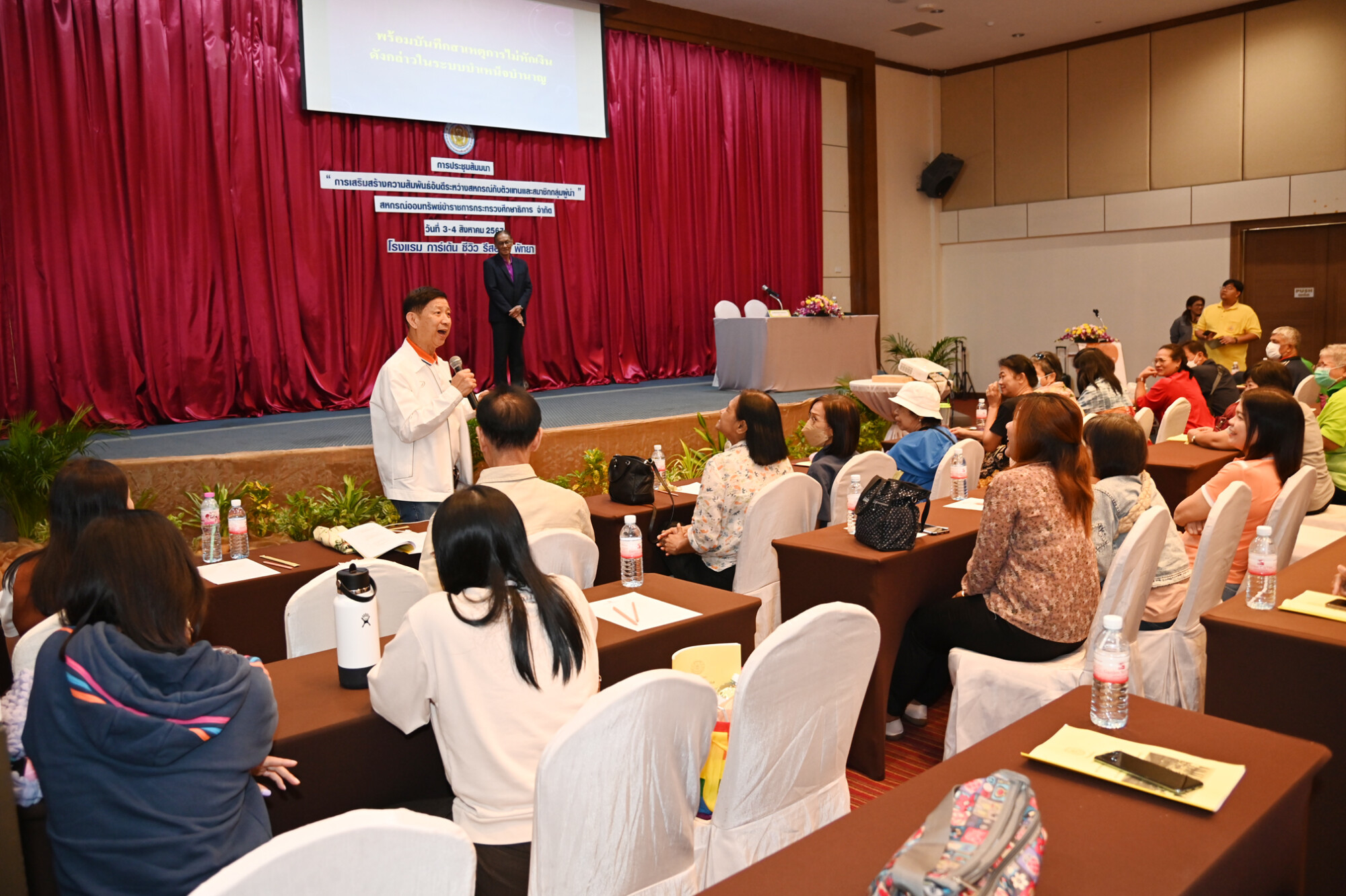 นายเชาว์เลิศ ขวัญเมือง ประธานกรรมการสหกรณ์ออมทรัพย์ข้าราชการกระทรวงศึกษาธิการ จำกัด (สอ.ศธ.) เป็นประธานพิธีเปิดการประชุมสัมมนาการเสริมสร้างความสัมพันธ์อันดีระหว่างสหกรณ์กับตัวแทน และสมาชิกกลุ่มผู้นำ ประจำปี 2567 โดยมีนายพูลลาภ อินทรนัฎ รองประธานกรรมการ รศ.ดร. ไพเลิศ สุมานนท์ รองประธานกรรมการ กรรมการดำเนินการ กรรมการฝ่ายวางแผนและพัฒนา ที่ปรึกษา ผู้จัดการ เจ้าหน้าที่ เจ้าหน้าที่ตัวแทน และสมาชิกกลุ่มผู้นำที่เกี่ยวข้องเข้าร่วม ณ โรงแรมการ์เดนท์ ซีวิว พัทยา จังหวัดชลบุรี เมื่อวันที่ 3 สิงหาคม 2567