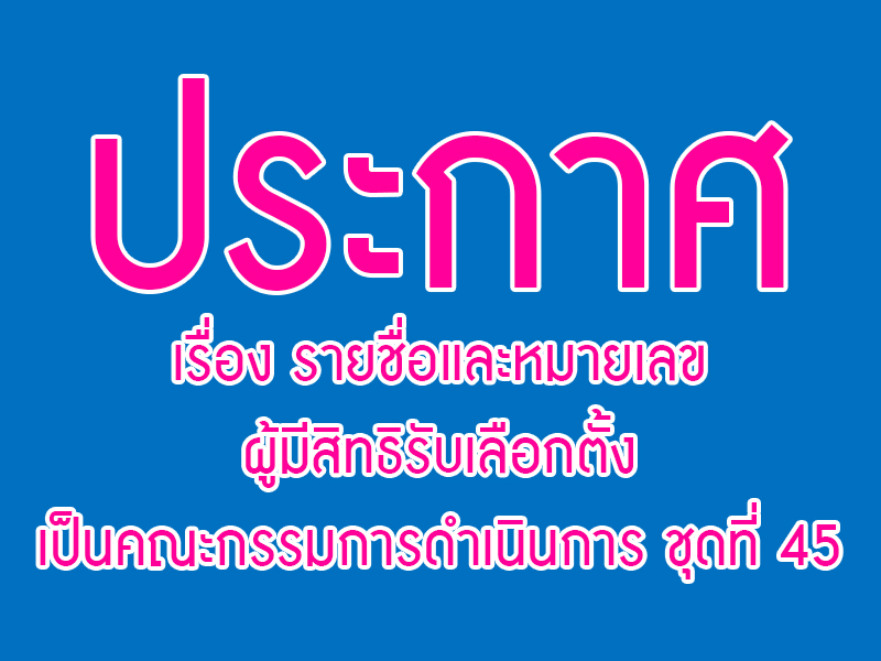 ประกาศ เรื่อง รายชื่อและหมายเลขผู้มีสิทธิรับเลือกตั้งเป็นคณะกรรมการดำเนินการ ชุดที่ 45 Post published:13 มกราคม 2026 Post category:Slide หน้าแรก / กิจกรรม / ข่าวสหกรณ์ฯ / เรื่องที่น่าสนใจ ประกาศ เรื่อง รายชื่อและหมายเลขผู้มีสิทธิรับเลือกตั้งเป็นคณะกรรมการดำเนินการ ชุดที่ 45 You Might Also Like สอ.ศธ. สัญจรพบผู้บริหารและการให้บริการในหน่วยงานของสมาชิก ณ มรภ.พระนคร 29 สิงหาคม 2025 ๔๘ ปี ครบรอบวันสถาปนา สอ.ศธ. 2 เมษายน 2025 วันหยุดเทศกาลสงกรานต์ ประจำปี 2567 10 เมษายน 2024