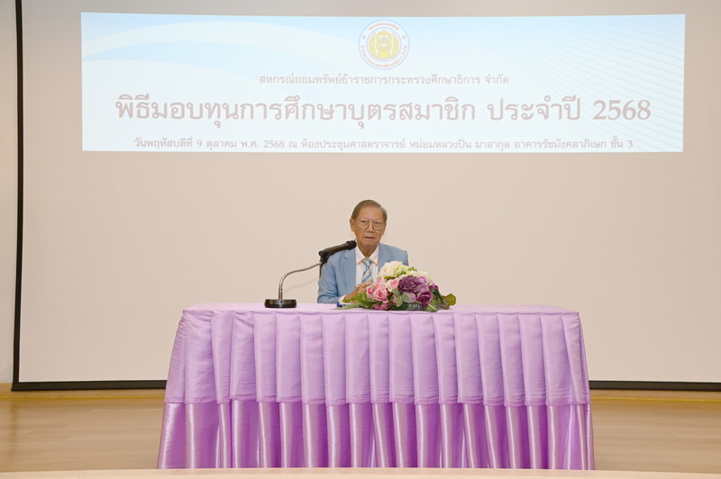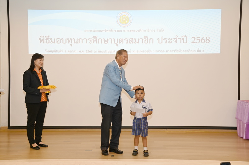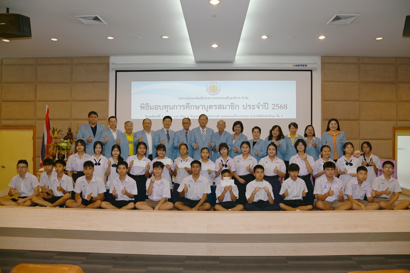 ว่าที่ ร.ต. จรูญ ชูลาภ ประธานกรรมการสหกรณ์ออมทรัพย์ข้าราชการกระทรวงศึกษาธิการ จำกัด (สอ.ศธ.) นายวิโรจน์ ใจอารีรอบ รองประธานกรรมการ นายพูลลาภ อินทรนัฎ รองประธานกรรมการ นางสมจิตร ธัมวิสุทธิวรากร ผู้จัดการ พร้อมด้วยกรรมการดำเนินการ ที่ปรึกษา กรรมการฝ่ายสวัสดิการ และเจ้าหน้าที่ จัดพิธีมอบทุนการศึกษาบุตรสมาชิก ประจำปี 2568 เมื่อวันที่ 9 ตุลาคม 2568 ณ ห้องประชุมศาสตราจารย์ หม่อมหลวงปิ่น มาลากุล อาคารรัชมังคลาภิเษก ชั้น 3 กระทรวงศึกษาธิการ กรุงเทพมหานคร