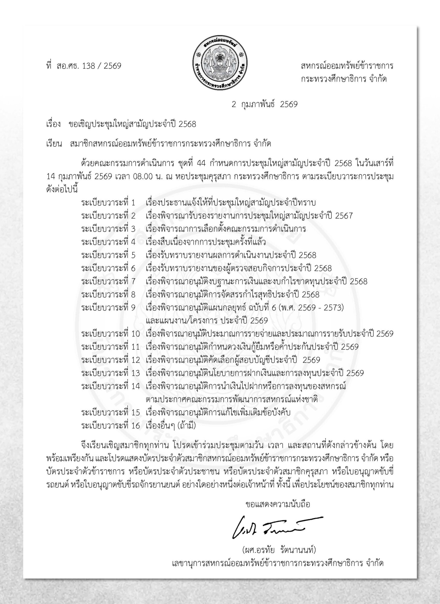 ขอเชิญสมาชิกสหกรณ์ออมทรัพย์ข้าราชการกระทรวงศึกษาธิการ จำกัด เข้าร่วมประชุมใหญ่สามัญ ประจำป 2568 พร้อมทั้งเลือกตั้ง กรรมการดำเนินการ