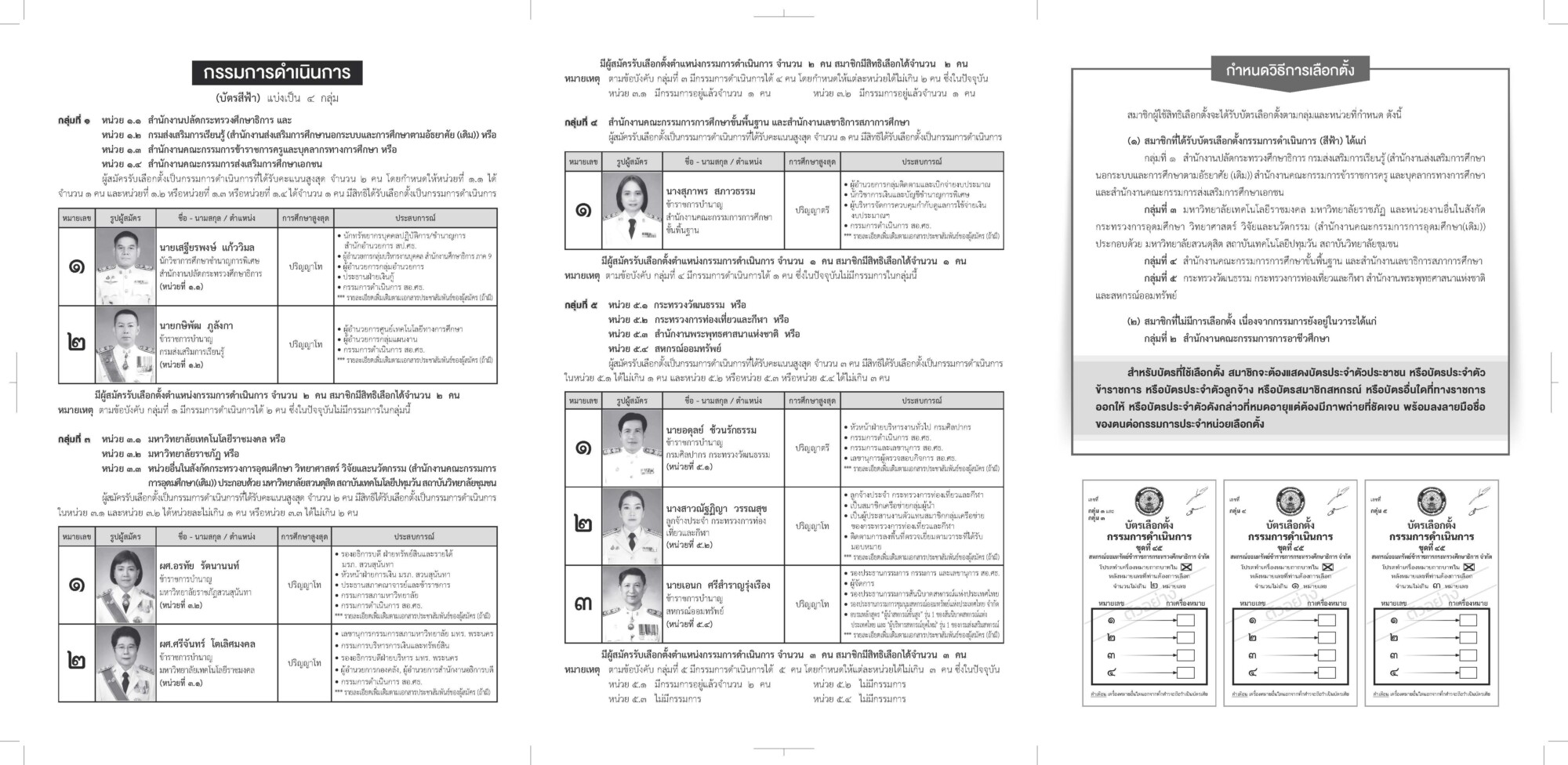 1. โปรดนำบัตรประชาชน  หรือ บัตรข้าราชการ หรือ บัตรที่ทางราชการออกให้ หรือ บัตรสมาชิก สอ.ศธ. มาด้วย เพื่อลงทะเบียนและใช้สิทธิเลือกตั้ง