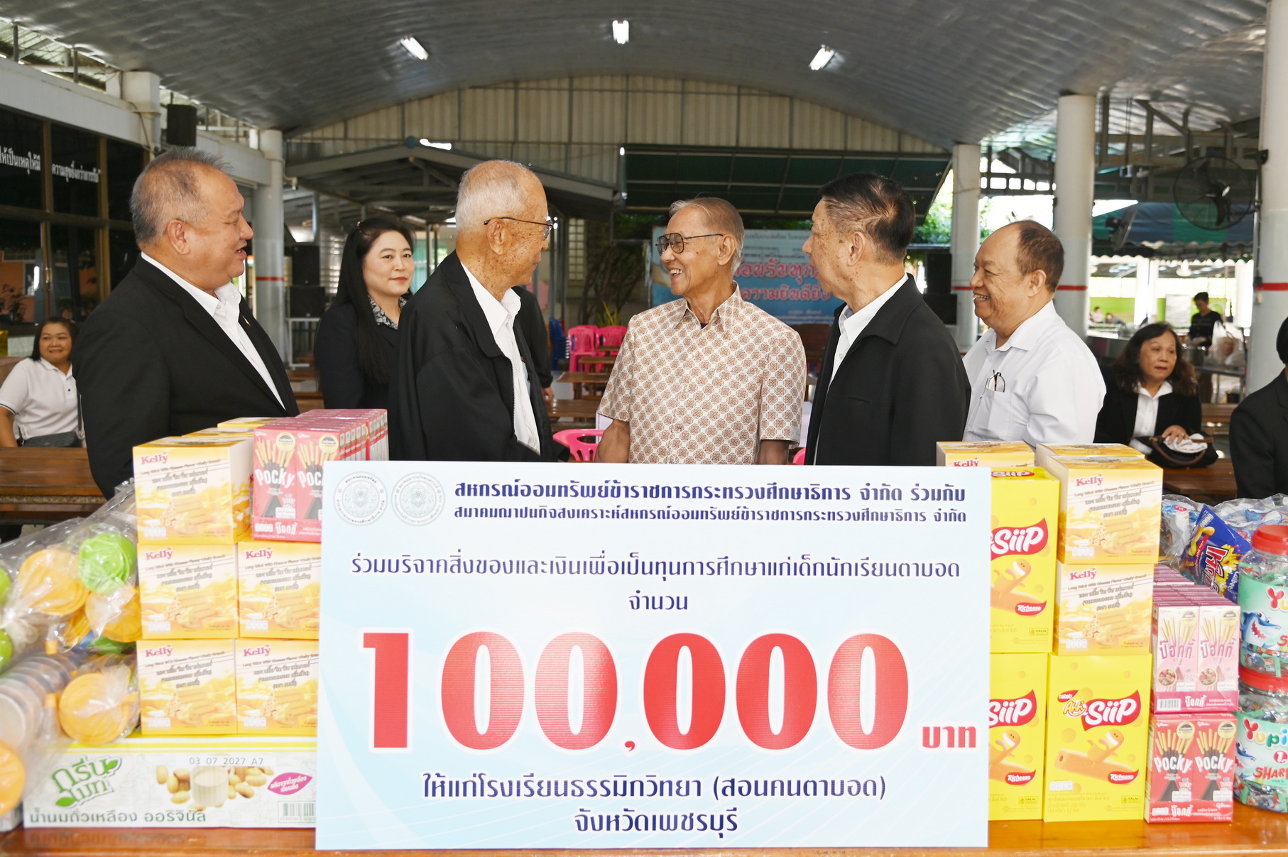 นายยศพล เวณุโกเศศ รองประธานกรรมการสหกรณ์ออมทรัพย์ข้าราชการกระทรวงศึกษาธิการ จำกัด (สอ.ศธ.) นายพูลลาภ อินทรนัฎ รองประธานกรรมการ สอ.ศธ. คณะผู้บริหาร ที่ปรึกษา ผู้จัดการ เจ้าหน้าที่ และนายเอนก ศรีสำราญรุ่งเรือง นายกสมาคมฌาปนกิจสงเคราะห์สหกรณ์ออมทรัพย์ข้าราชการกระทรวงศึกษาธิการ จำกัด (สสอ.ศธ.) จัดกิจกรรมสื่อสารประชาสัมพันธ์สร้างภาพลักษณ์ ประจำปี 2568 มอบเงินสนับสนุนทุนการศึกษา จำนวน 120,500.00 บาท (หนึ่งแสนสองหมื่นห้าร้อยบาทถ้วน) พร้อมด้วยสิ่งของอุปโภค-บริโภคให้กับนักเรียนโรงเรียนธรรมิกวิทยา เพื่อร่วมสนับสนุนการเรียนการสอน และสร้างโอกาสพัฒนาขีดความสามารถให้แก่ผู้บกพร่องทางการมองเห็น โดยมี ดร. แสวง เอี่ยมองค์ ที่ปรึกษาอาวุโสมูลนิธิธรรมิกชนเพื่อคนตาบอดในประเทศไทย ในพระบรมราชูปถัมภ์ ร่วมให้การต้อนรับและรับมอบ พร้อมด้วยบุคลากรและเด็กนักเรียนเข้าร่วมกิจกรรมด้วย เมื่อวันที่ 20 ธันวาคม 2568 ณ โรงเรียนธรรมิกวิทยา จังหวัดเพชรบุรี