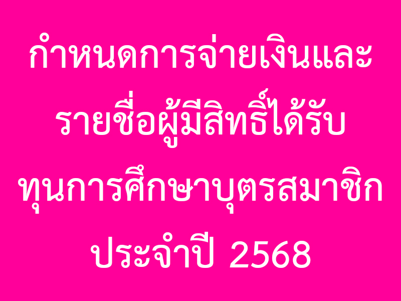 กำหนดการจ่ายเงินและรายชื่อผู้มีสิทธิ์ได้รับทุนการศึกษาบุตรสมาชิก ประจำปี 2568 Post published:16 กันยายน 2025 Post category:Slide หน้าแรก / ข่าวสหกรณ์ฯ / ประกาศ / เรื่องที่น่าสนใจ รายละเอียดประกาศ : 1. กำหนดการจ่ายเงินทุนการศึกษาบุตรสมาชิก ประจำปี 2568 2. รายชื่อผู้มีสิทธิ์ได้รับทุนการศึกษาบุตรสมาชิก ประจำปี 2568 You Might Also Like ข่าวประชาสัมพันธ์ เดือนพฤษภาคม 2567 2 พฤษภาคม 2024 ข่าวประชาสัมพันธ์ เดือนสิงหาคม 2568 31 กรกฎาคม 2025 อัพตราดอกเบี้ยเงินฝาก 3 กรกฎาคม 2023